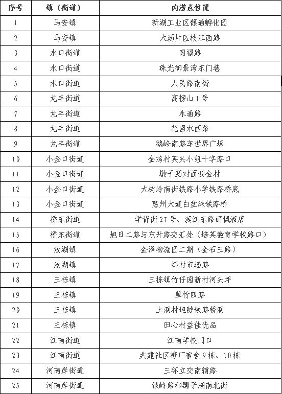 惠城中心區(qū)內(nèi)澇積水點整治工程位置表