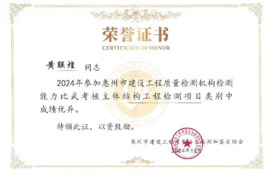 大禹檢測公司勇奪2024年惠州市主體結(jié)構(gòu)工程檢測比武團體季軍